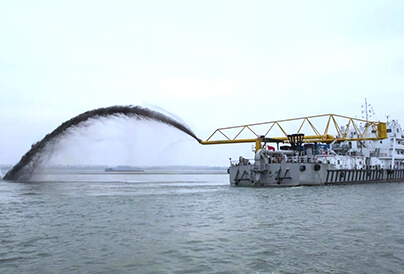 利用挖泥船將航道內(nèi)的泥土挖出后,使用管線將挖出的泥土排放到需要進行回填的港口或碼頭上,通過泥土回填的方式來使港口和碼頭填筑到需要建設(shè)的高度,這便是吹填工程。